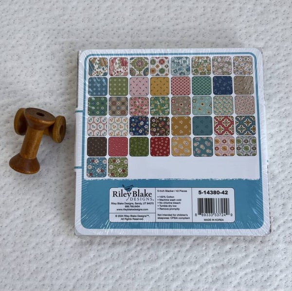 The Charm Pack Riley Blake - Mercantile by Lori Holt features a collection of 5" x 5" pre-cut fabric squares in vintage-inspired patterns and colors. Perfect for quilting, patchwork, and crafting.