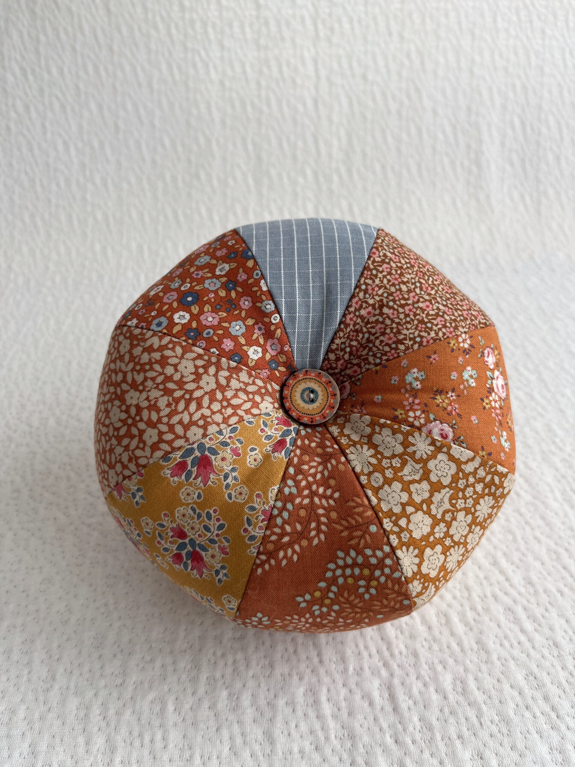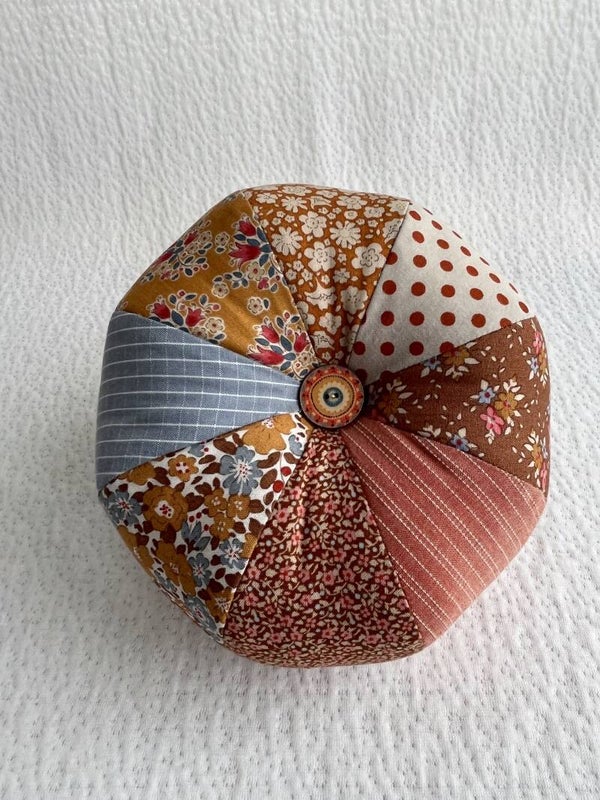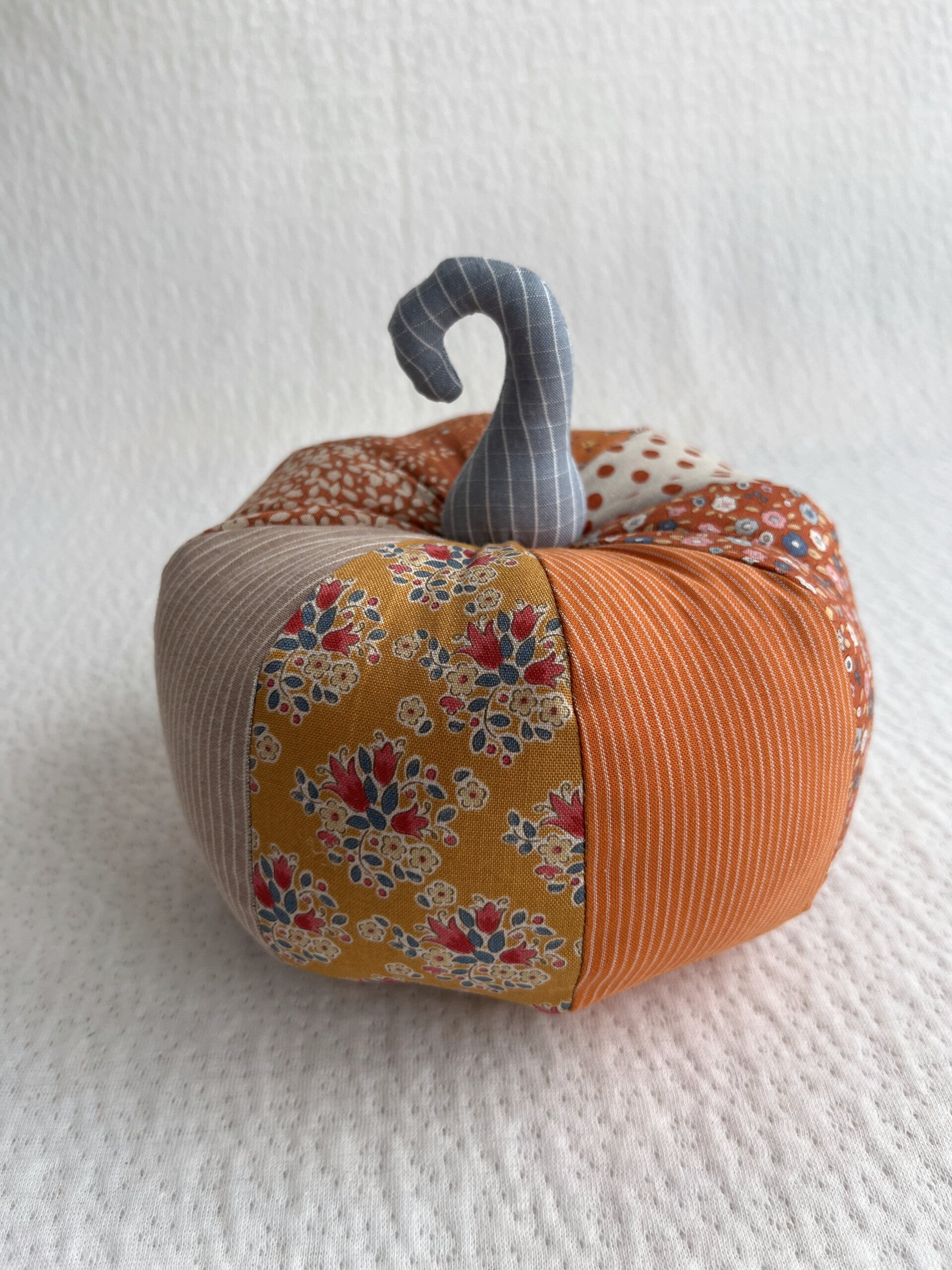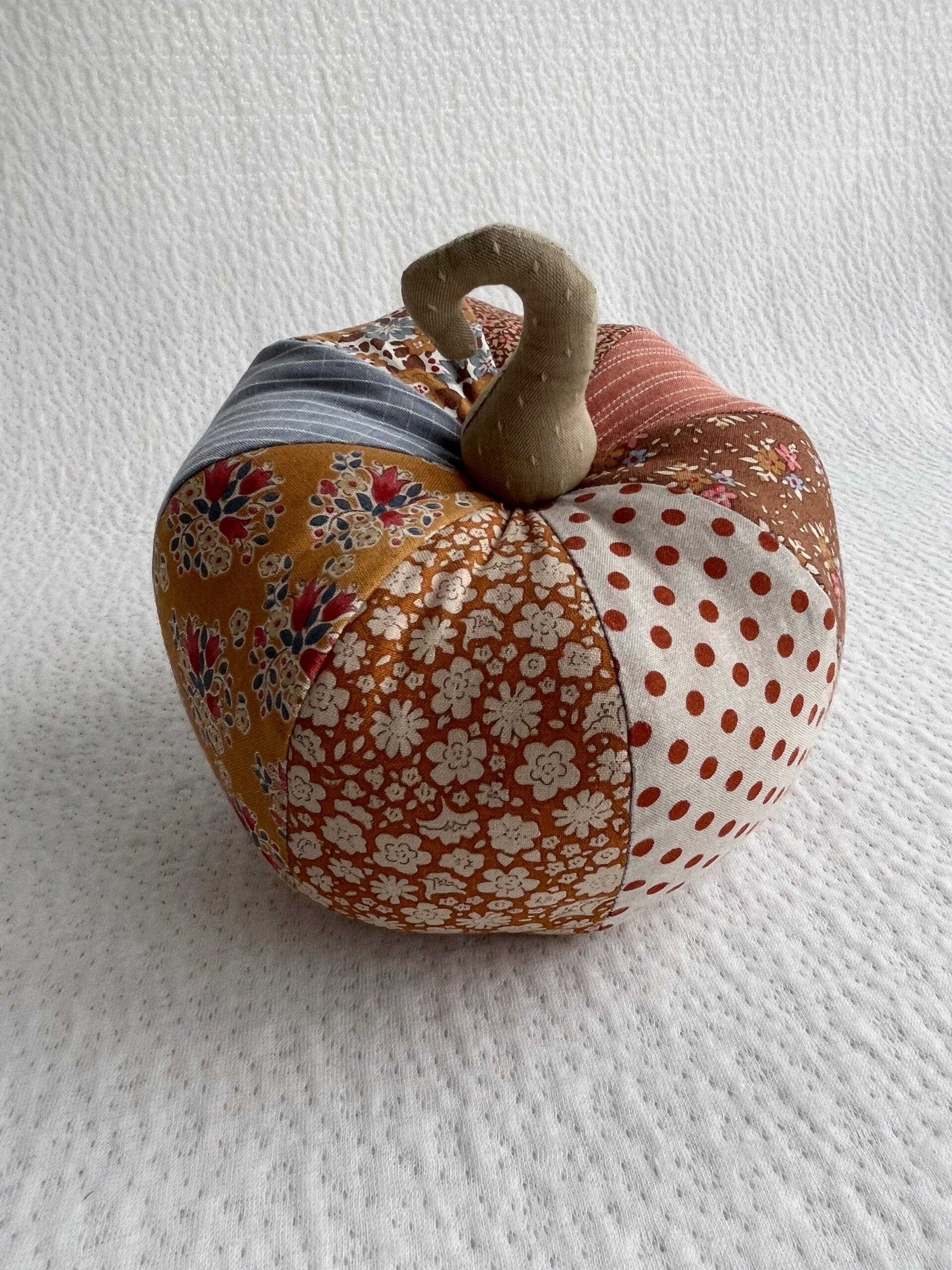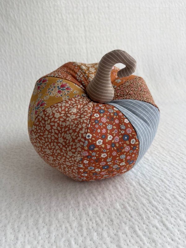 This small stuffed pumpkin is made from fabrics in the Tilda Creating Memories – Autumn collection. The soft, warm colours are perfect for the autumn season.