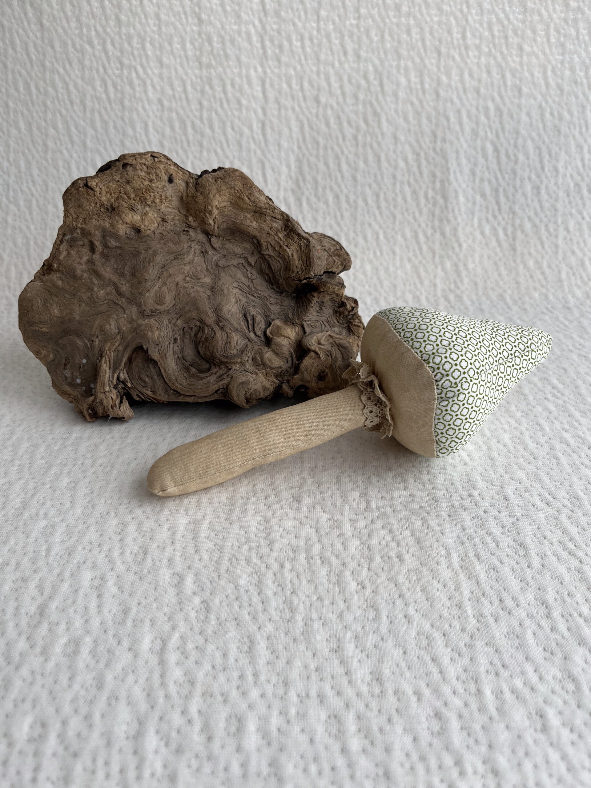 These handmade fabric mushrooms bring a soft, natural touch to any space. Each one is carefully sewn and shaped to create gentle texture and form. Perfect for adding a bit of charm to a shelf, table display, or nature-inspired décor.