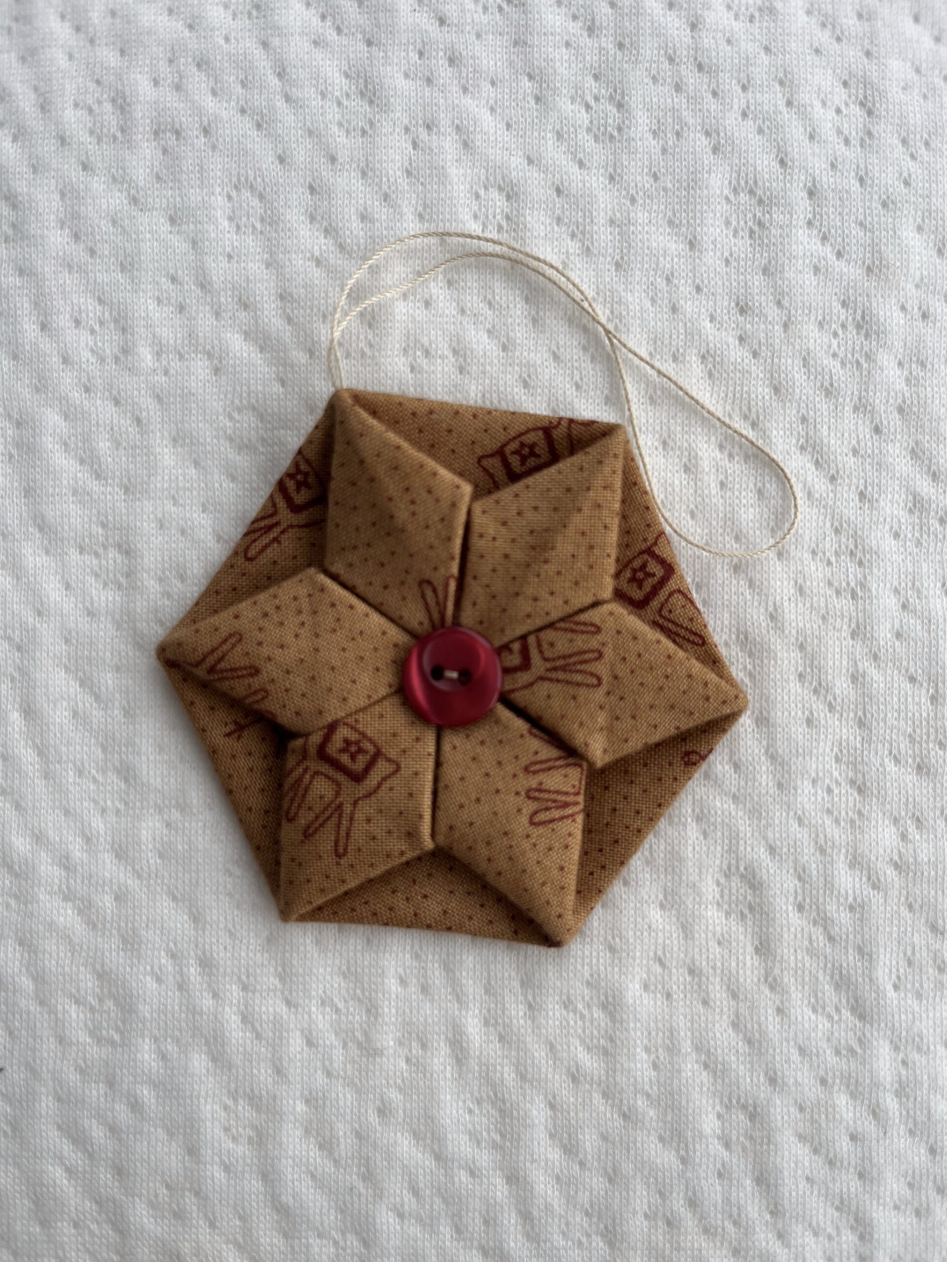 Add a handmade touch to your home this holiday season with this fabric hexagon star. Each piece is carefully sewn and shaped by hand. Hang it on your Christmas tree, in a window, or place it on a shelf to bring a subtle holiday feel.