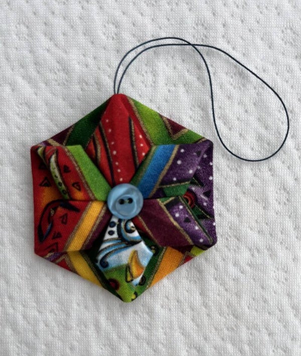 Add a handmade touch to your home this holiday season with this fabric hexagon star. Each piece is carefully sewn and shaped by hand. Hang it on your Christmas tree, in a window, or place it on a shelf to bring a subtle holiday feel.