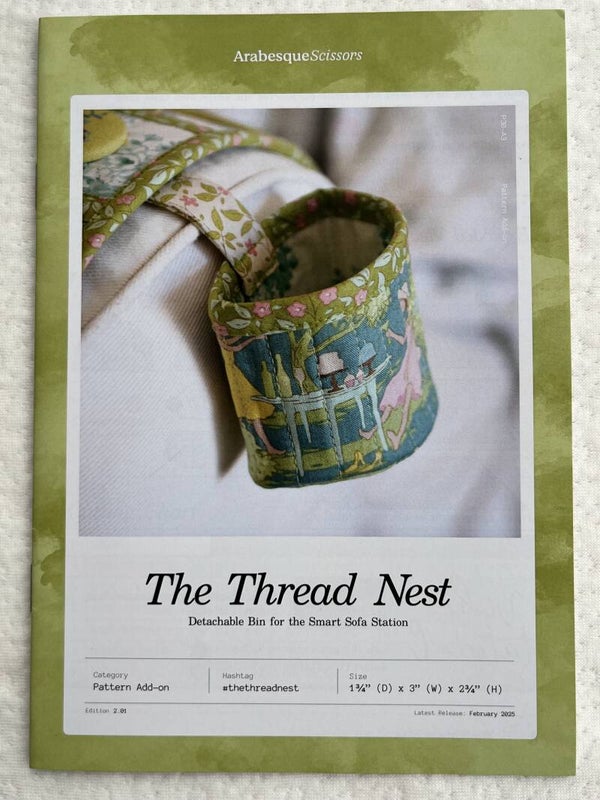 Discover the ultimate armchair organiser—an Arabesque Scissors sewing pattern designed to streamline your couch-craft workflow. This complete set includes the Smart Sofa Station along with three versatile add-ons: the Thread Nest, Pin Pod, and Tiny Tub, keeping all your sewing essentials close at hand and beautifully organised.