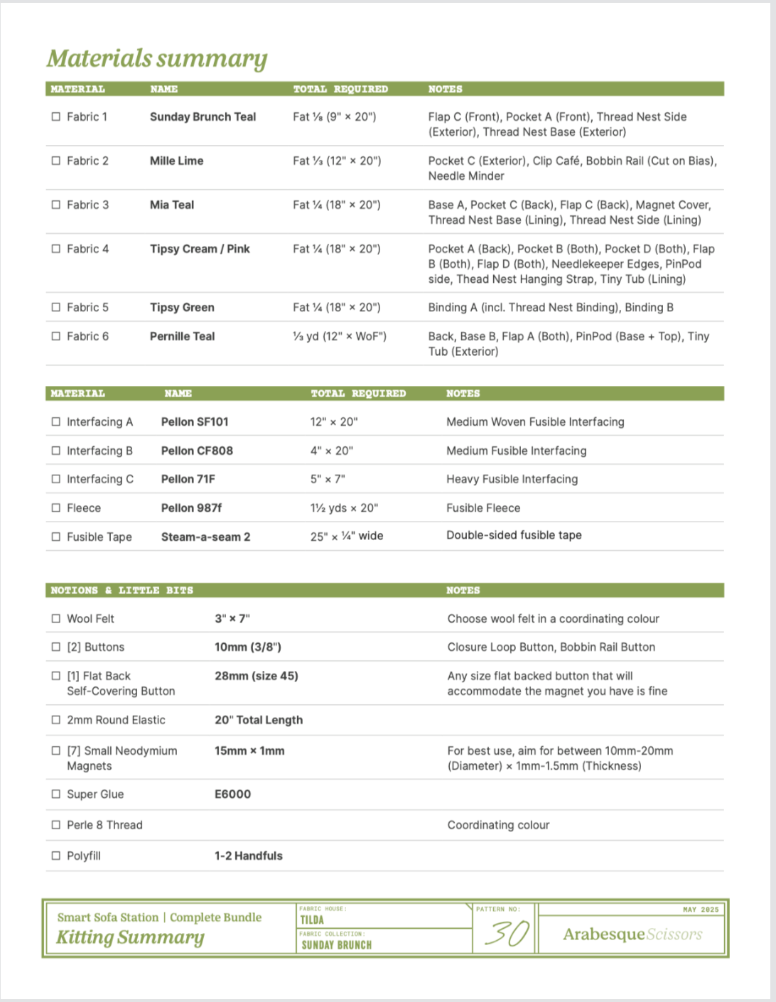 Smart Sofa Station Bundle – Arabesque Scissors Printed Sewing Pattern
