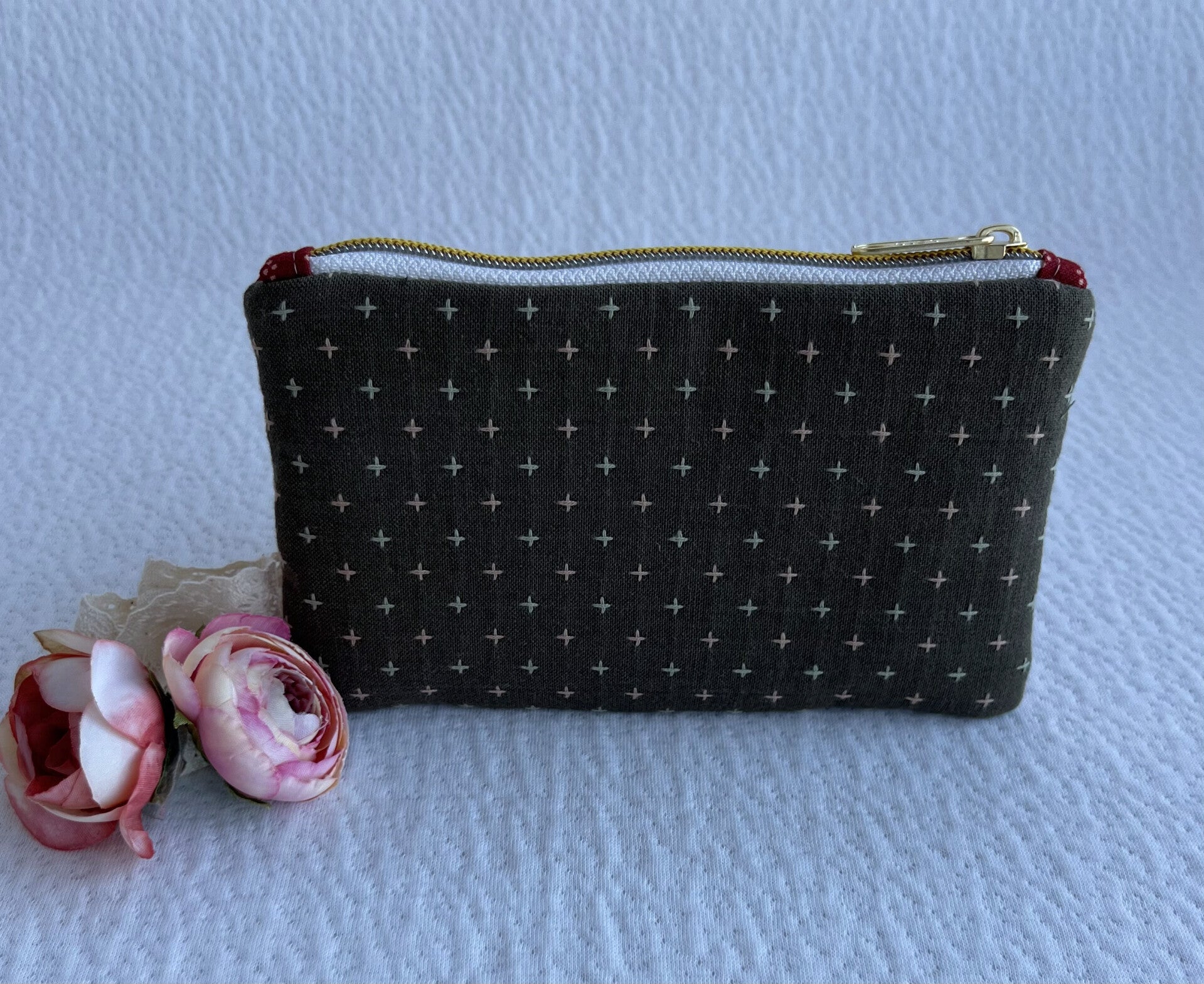 This handmade double zipper pouch is a practical way to keep small everyday items together. It has a main zip compartment and a front zip pocket for easy access. Suitable for makeup, cards, coins, cables, or other small items, both at home and on the go.